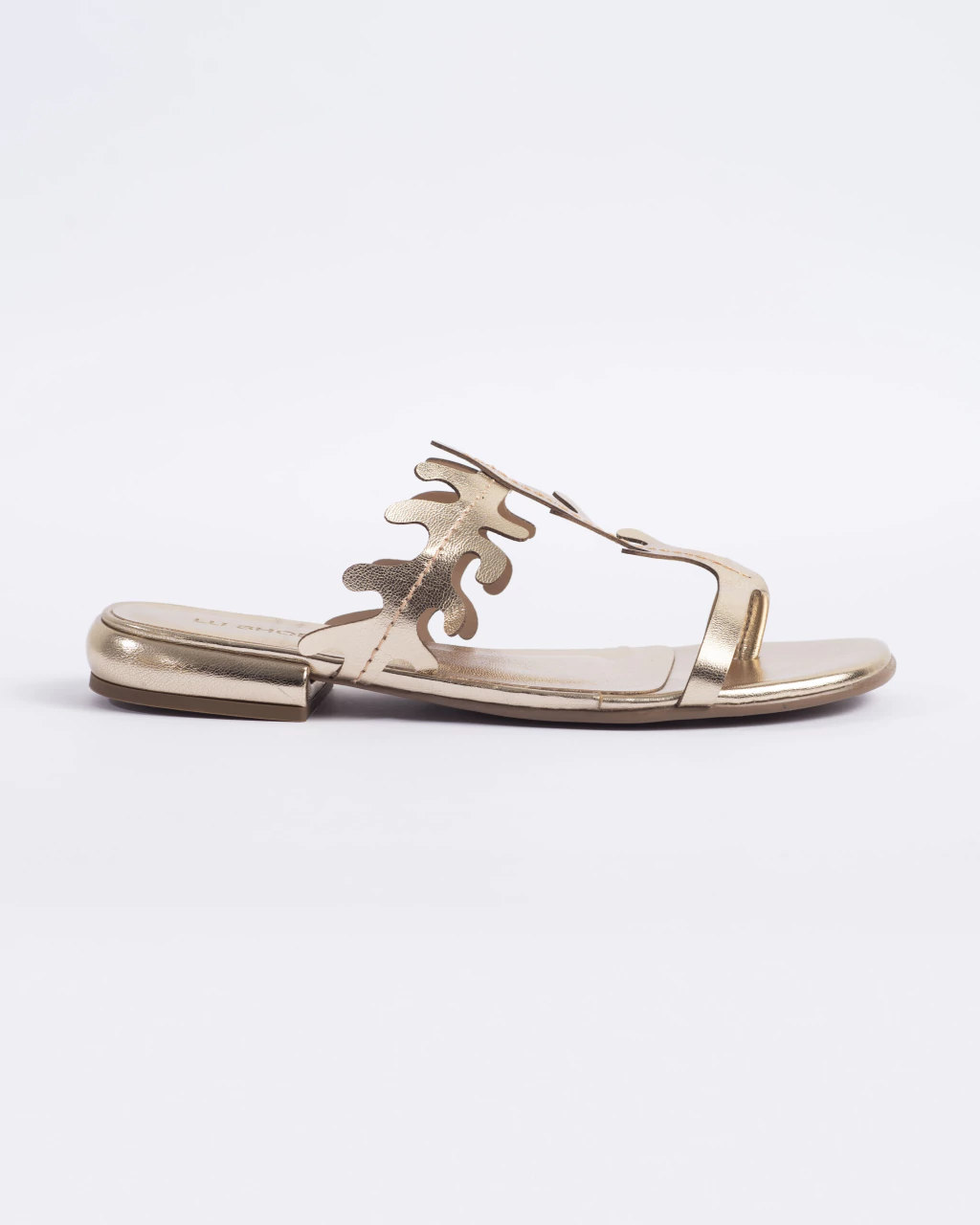 O destaque fica por conta do sofisticado recorte a laser, que além de trazer um design moderno e sofisticado, permite uma excelente ventilação, ideal para os dias mais quentes. Seu acabamento em metalizado adiciona um toque de brilho sutil, tornando a rasteira versátil para diversas ocasiões, desde passeios casuais até eventos mais descontraídos.